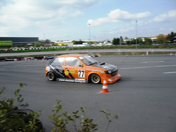Mit anderen Reifen versuchte ich das Gripproblem zu beheben.Leider wurde kein wesentlicher Fortschritt dadurch erziehlt.Der glatte Asphalt und die abkühlenden Reifen zwischen den einzelnen Läufen trugen dazu wesentlich bei.Wieder kamen Hutfehler mit in die Wertung und somit landete ich am Ende des Feldes.