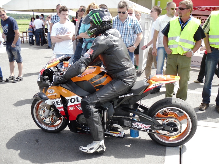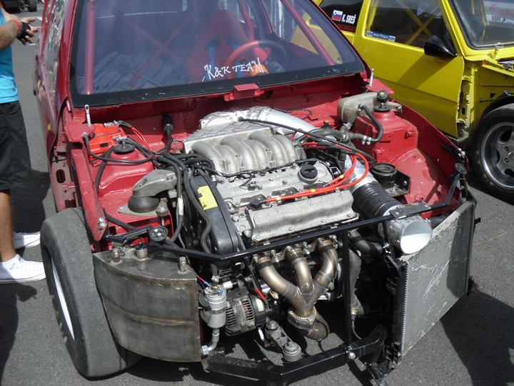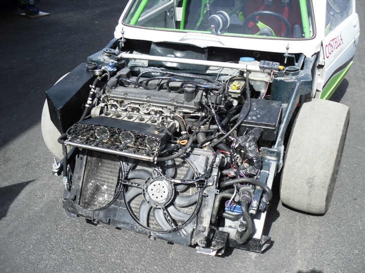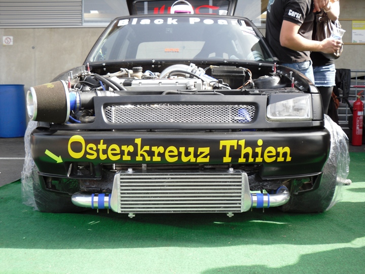 Mit Kupplungs-u. Schaltprobleme so wie motortechnische Probleme gelang nur eine einzige ansprechende Zeit. Testete ich zum ersten Mal die größeren (F 3 Reifen) die mir helfen sollten das kurz übersetzte Getriebe auszugleichen, folgte zu gleich das erste Problem. Die Kupplung fing im dritten Gang zu rutschen an so das ich nach zwei Wertungsläufen auf die älteren kleineren Reifen zurück griff. Keilriemenriss, defekte Zündkerzen und Schaltprobleme in Lauf Drei und Vier verschlechterten die Zeit deutlich. 7,13 sec war dieses Mal die schnellste Zeit. Dadurch das die Klasse Rennautos + 2000 ccm aufgeteilt wurde in 2WD und 4WD, konnte ich mich hinter Jürgen Dutter (Rosa Kampfsau +1000 PS)auf Platz Zwei einreihen.