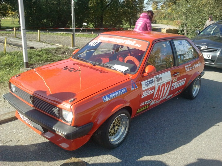 Nach den beiden Trainigsläufen noch mit vollem Optimismus mit Gregor Novak auf seinem starken Puch 500 RS mithalten zu können. Leider hatten die Reifen nach dem 3.Lauf nur mehr wenig Grip so das ich schon die Sträucher mit dem Heck streifte und auch noch Hutfehler dazu kahmen. Auch eine 38 er Zeit(die nur wenige Fahrer erreichten) half mir sehr wenig und rutschte sogar noch auf Rang drei zurück.
