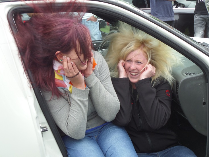Laut wurde es dann bei der DB-Messung. Ein mit 18 Woofern bestückten VW Caddy hat es bei der Messung sogar die Windschutzscheibe zerrissen und lies einigen die Haare zu Berge stehen.