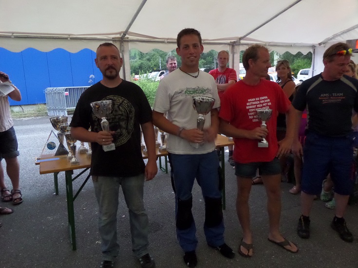 Bei Temperaturen über 30° hatten viele Probleme mit den Reifen. Mit Bestzeiten nach den Trainigsläufen ging ich voll motiviert in den Wertungsläufen. Leider hatte auch ich große Probleme mit den Reifen und wurde fast 2 sec. langsamer. Mit überhitzten Motor schaffte ich noch den 3.Platz und somit in der laufenden Saison 2014 den ersten Podestplatz in der Klasse 10 DIV III.