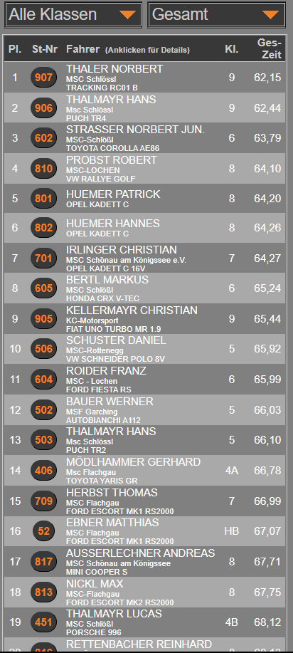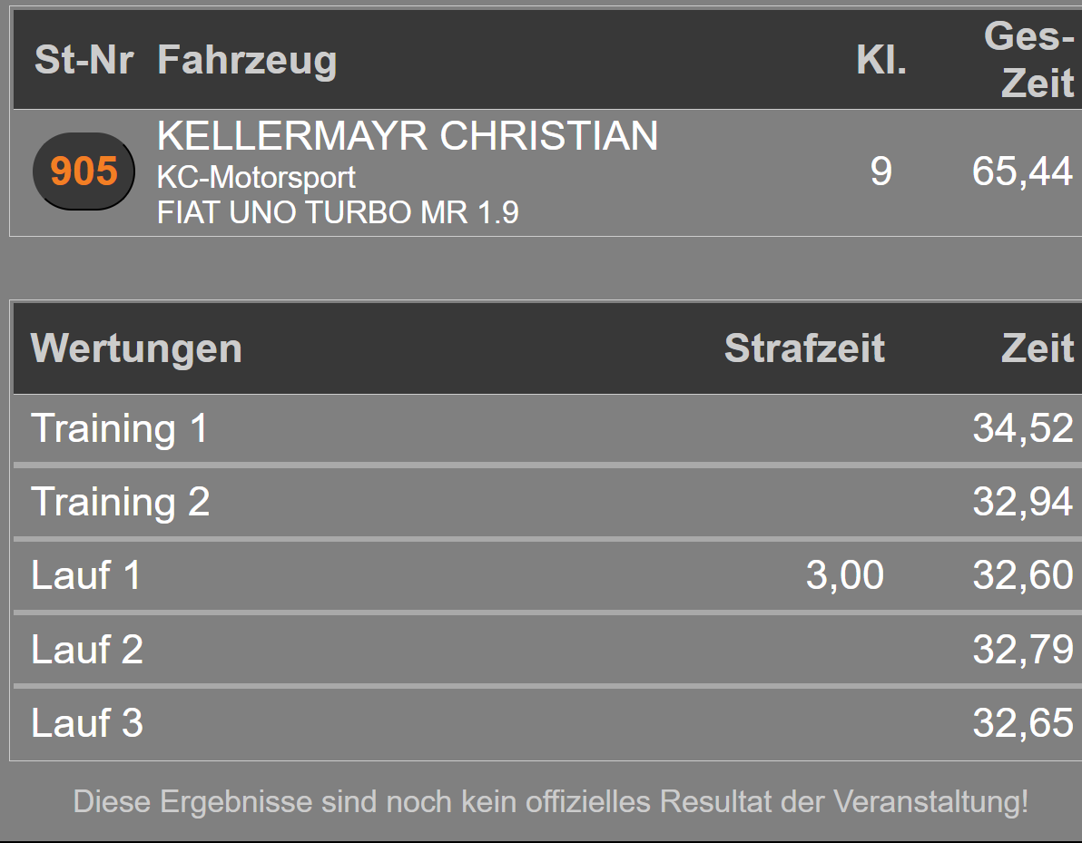 Durch einen techn. Defekt bei Gerald Strassers Tracking RB01B rutschte ich noch auf Platz drei noch vor Wallner Josef der seinen neuen Peugeot 206 Motorradmittelmotor zum ersten Mal testete.