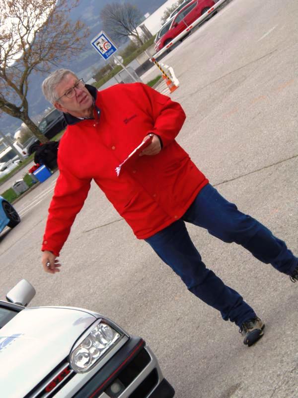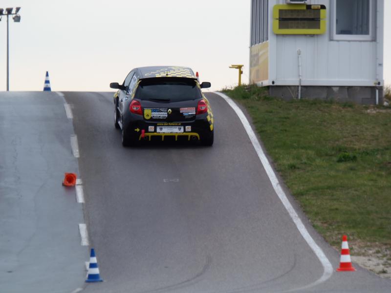 Mit gebrochenen Stabi auf der Hinterachse knapp am Podest vorbei.